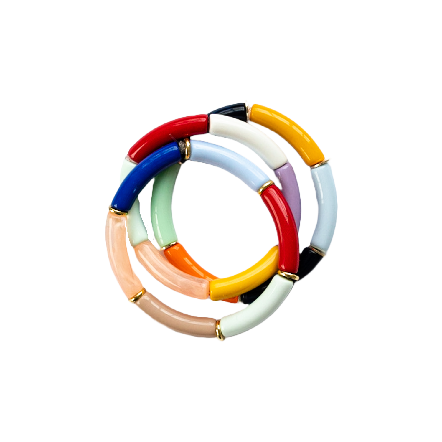 Everything required to make 6 beaded bracelets is included: 36 high quality resin beads, 24 gold plated spacers, elastic string and instructions