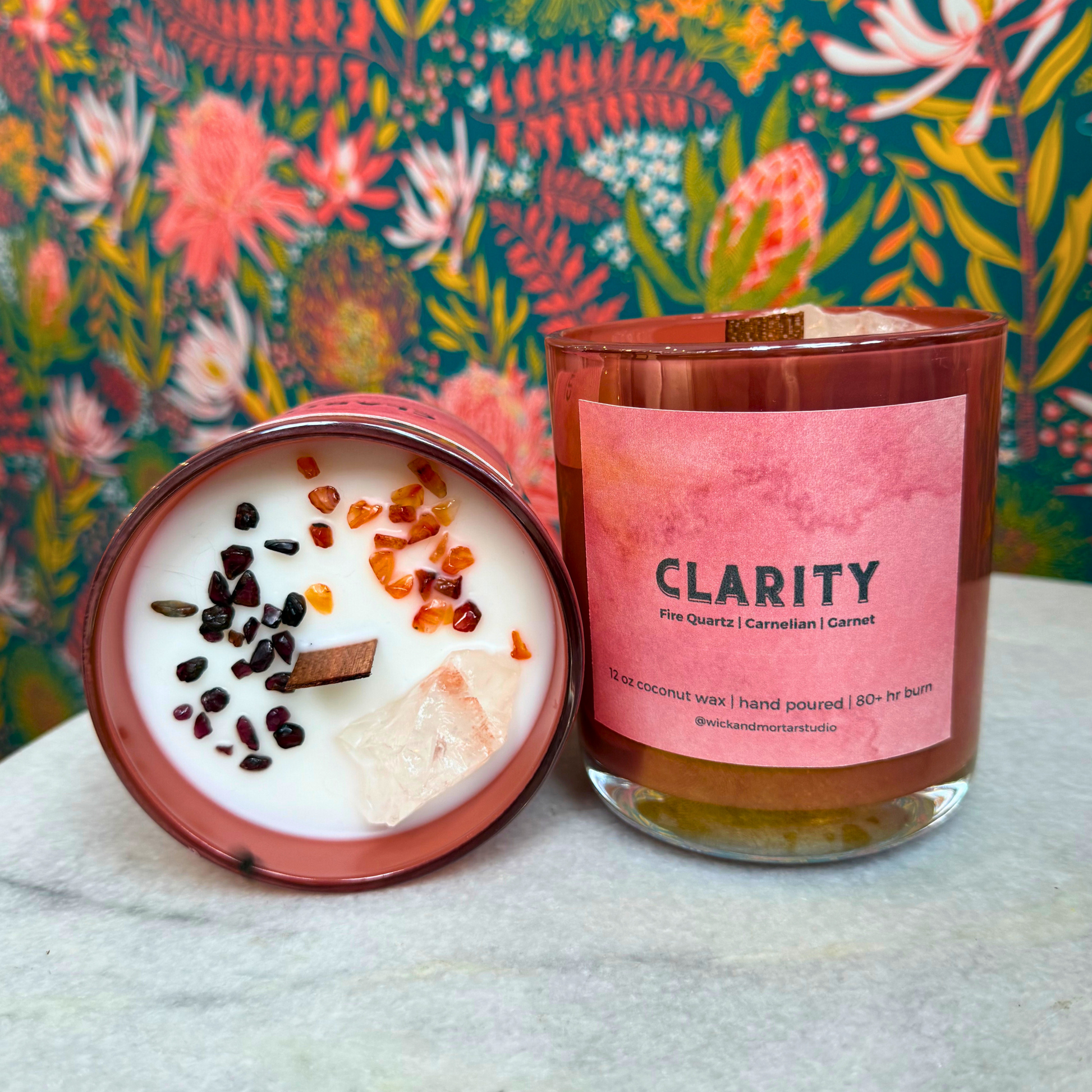 Clarity is a blend of aromatic sage and cool eucalyptus. Highlighted with hints of cinnamon, and complex tonka, and rounded out with smoke embers.