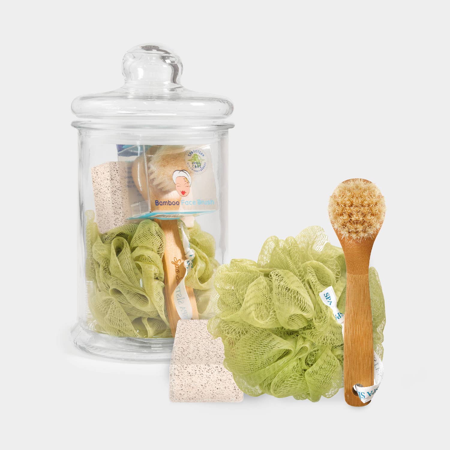 The Pink Apothecary Essentials Jar set combines vintage elegance with everyday functionality. Perfect for adding a stylish touch to your bathroom with all your daily essentials!