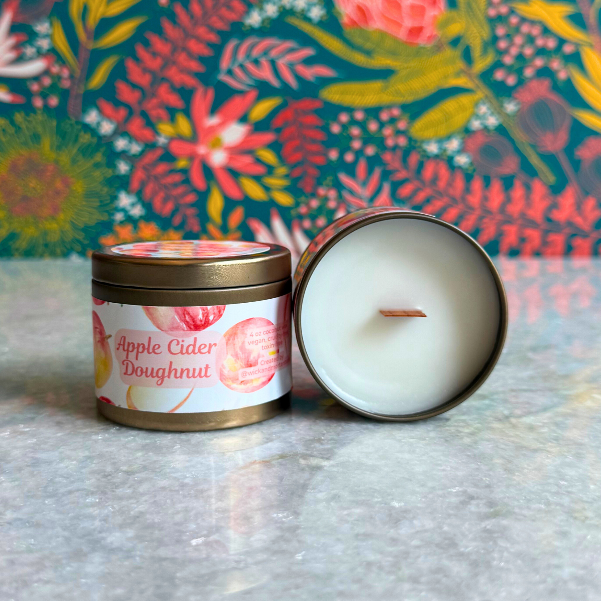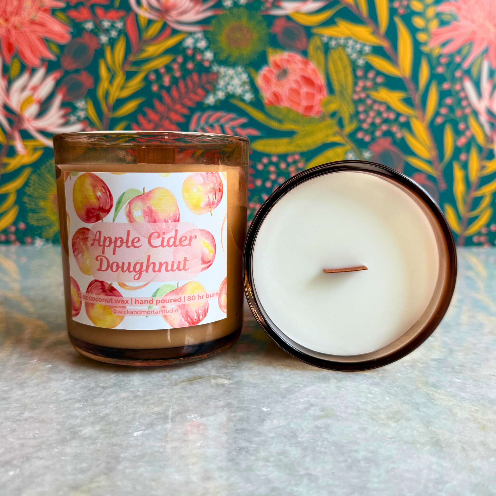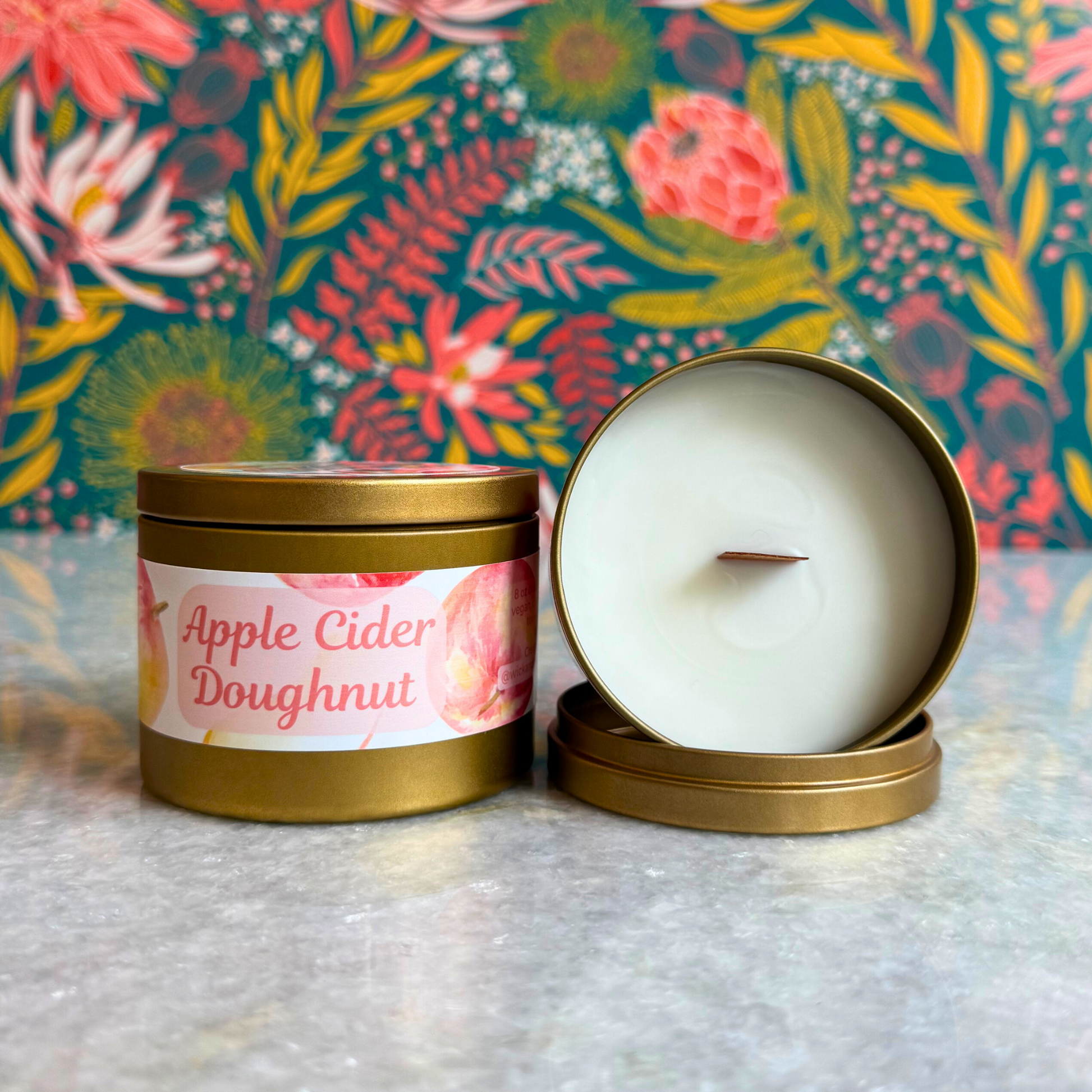Enjoy the tempting aroma of golden-fried doughnuts with a splash of cozy apple cider and a dusting of sweet sugar—the perfect scent to spark joy and cravings alike.