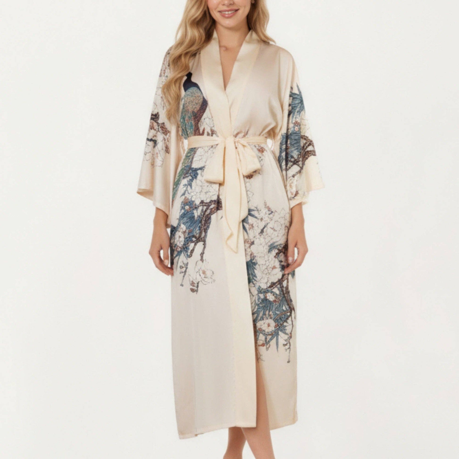 This gorgeous satin kimono robe combines timeless elegance with luxurious comfort.