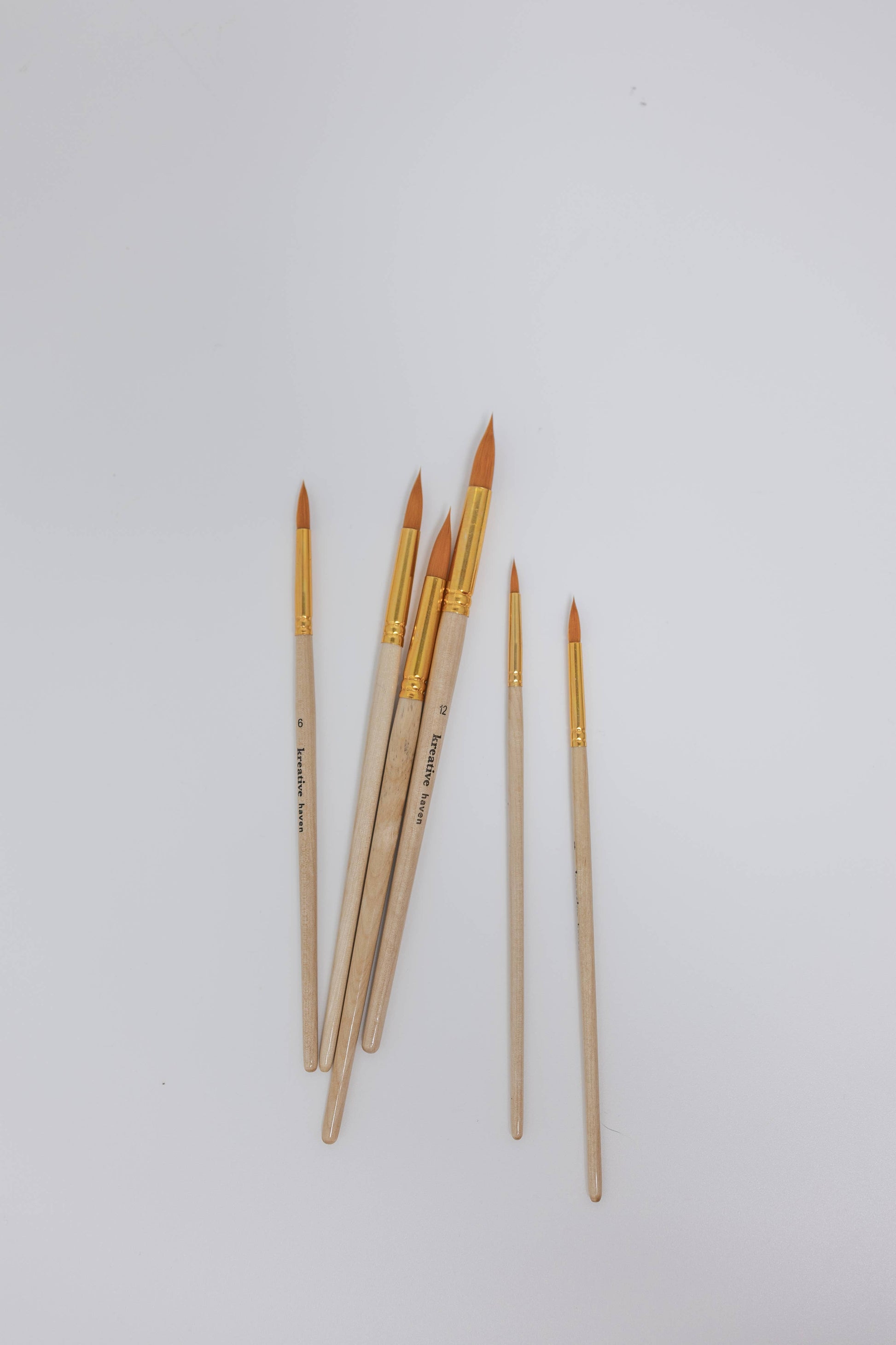 This set of six round brushes, in sizes 2 to 12, is ideal for beginners and versatile for acrylic, watercolor, and tempera. Durable and reliable, they’re perfect for regular creative use.